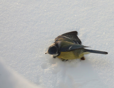 Kops! vain kuului, ja ikkunaan oli lentänyt joku. Näytti olevan sinitiainen. Taisi selvitä pelkällä säikähdyksellä.